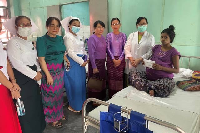 On (5-3-2025) Dr. Yu Yu Khin and Dr. Myint Myint Khaing, Central Executive Committee members of the Myanmar Maternal and Child Welfare Association, donated 500,000 Kyats to the mother for quadruplets from Women and Children’s Hospital, Yangon. The Obstetrician & Gynecologist, Professor Dr. Khin May Thin, thank for the donation. On (6-3-2025), the Obstetrician & Gynecologist, Professor Dr. Khin May Thin, successfully delivered the quadruplets.