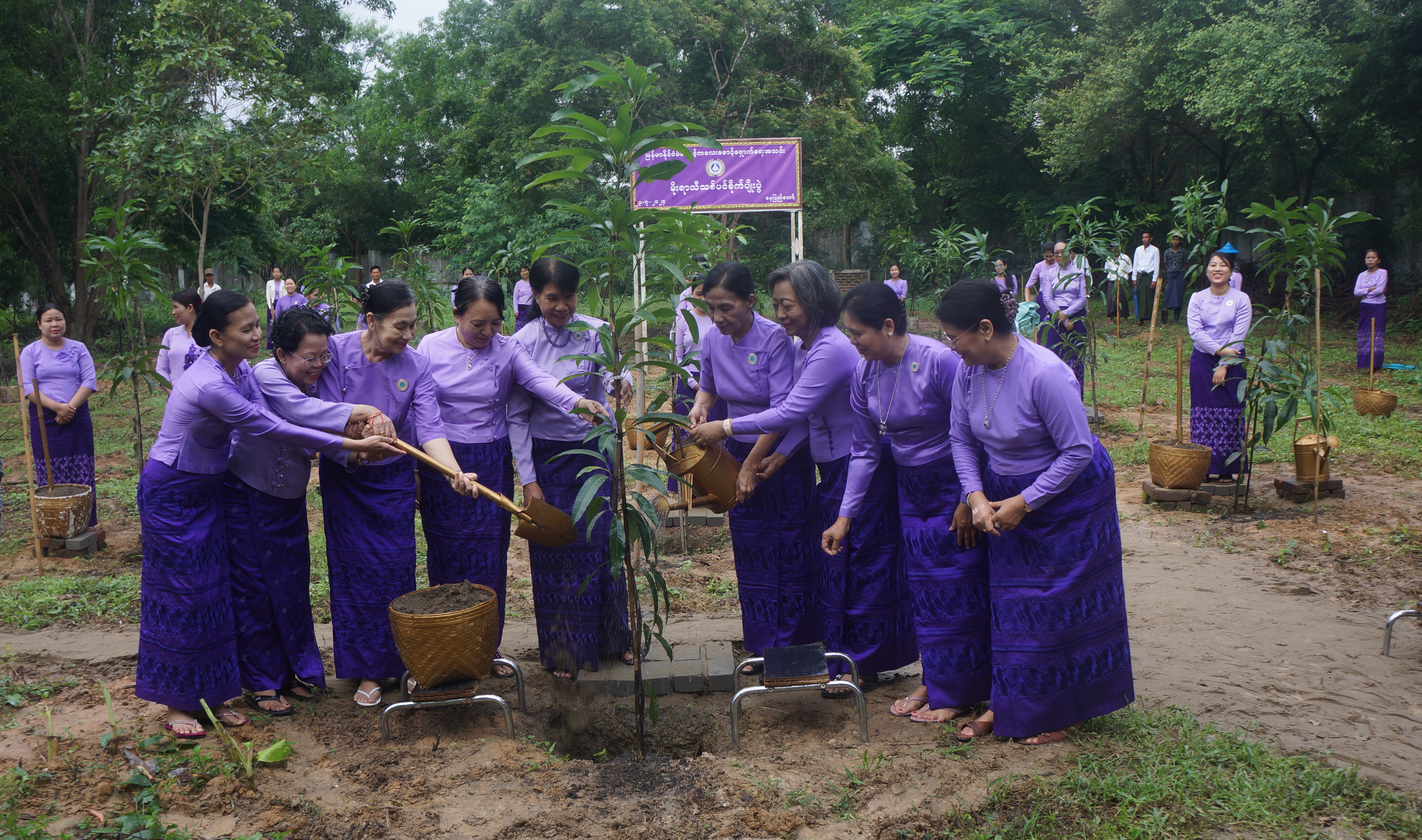 MMCWA’s President Prof. Dr. San San Myint Aung, Central Executive Committee Members, and staff attended this ceremony and planted trees.At the 2024 monsoon planting trees Event of the Myanmar Maternal and Child Welfare Association, 150 teak trees and 50 Mango trees were planted.