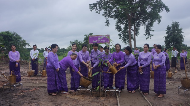 The MMCWA (Central) President, Professor Dr. San San Myint Aung, together with the Central Executive Committee members and all the office staff of the association, have jointly planted the (150) teak trees (designated as a treasured plant), and (40) SeinTalone mango trees (as perennial tree).