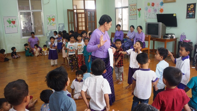 Next, the Secretary of the Myanmar Maternal and Child Welfare Association, Dr. Nwe Ni Ohn, conducted an awareness-raising session on Child Abuse by showing educational Pictures, preschool children and teachers to protect and avoid child abuse.