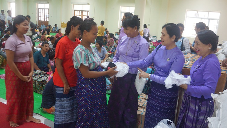 On September 13th 2024, Professor Dr. San San Myint Aung, President of the Myanmar Maternal and Child Welfare Association and Central Executive Committee members went to the GonHtout Monastery and ThaYatTaw Monastery in Nay Pyi Taw, which have been allocated for the flood-affected people, as well as to TaPaungKwin in Poppathiri Township and the ThaThaNaVateManTaw in Phinmana Township, donated clothes, clean water and food to the flood-affected people.