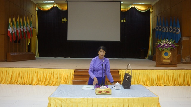 First, MMCWA’s President Prof. Dr. San San Myint Aung gave an opening speech. After that, the staffs presented a discussion and the relevant officials discussed again. After that, the President provided rice, Oil and potatoes to office staffs.